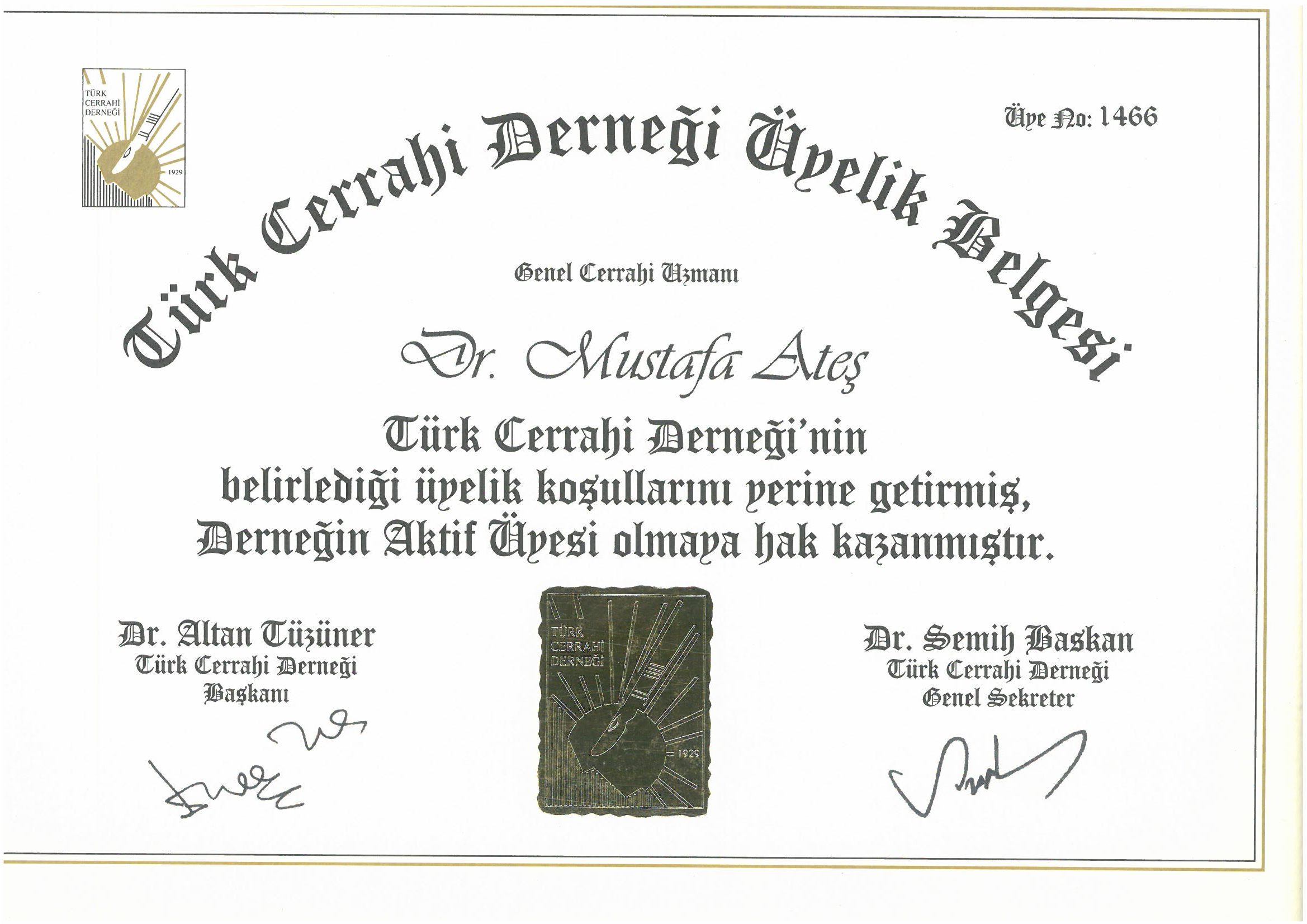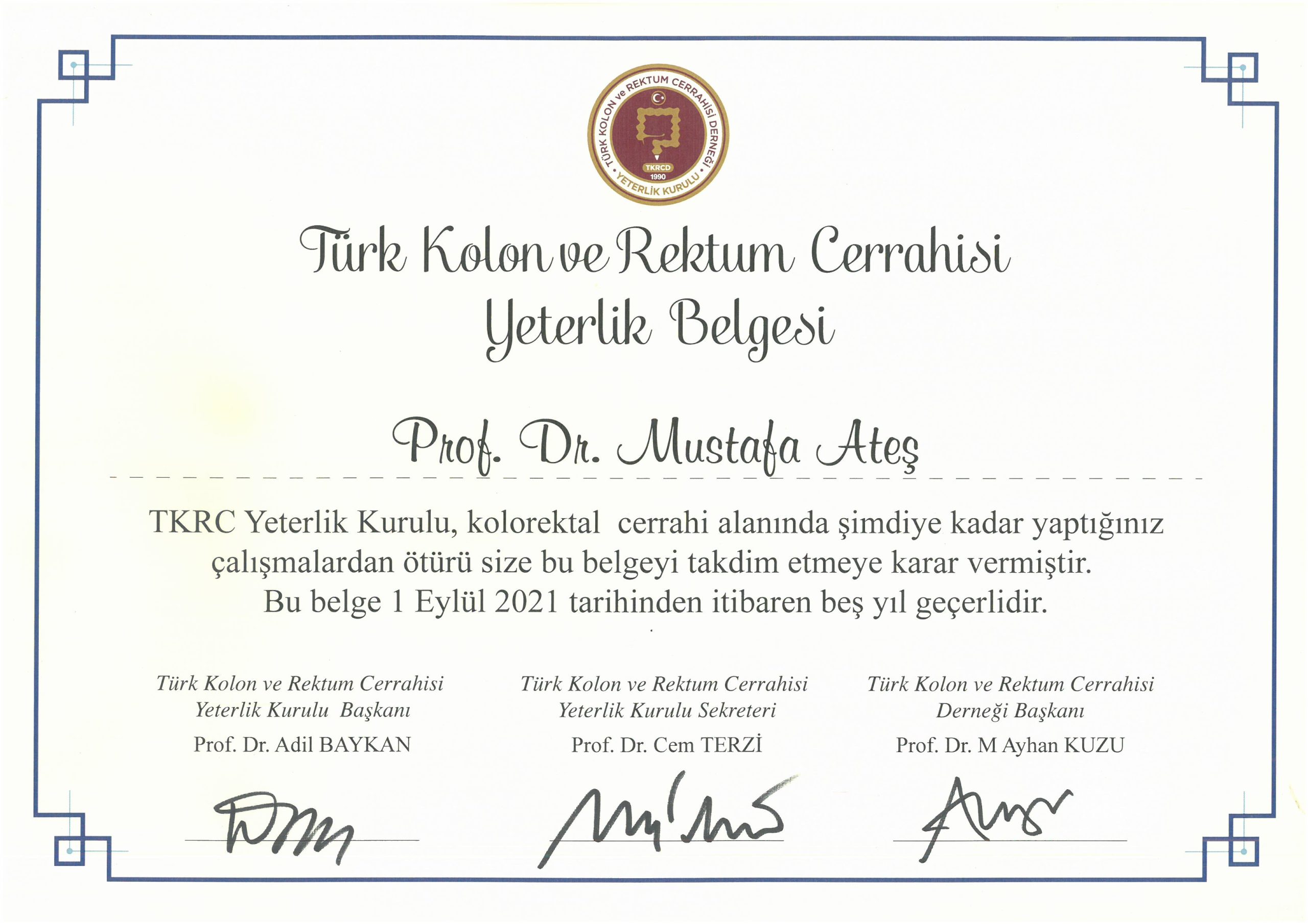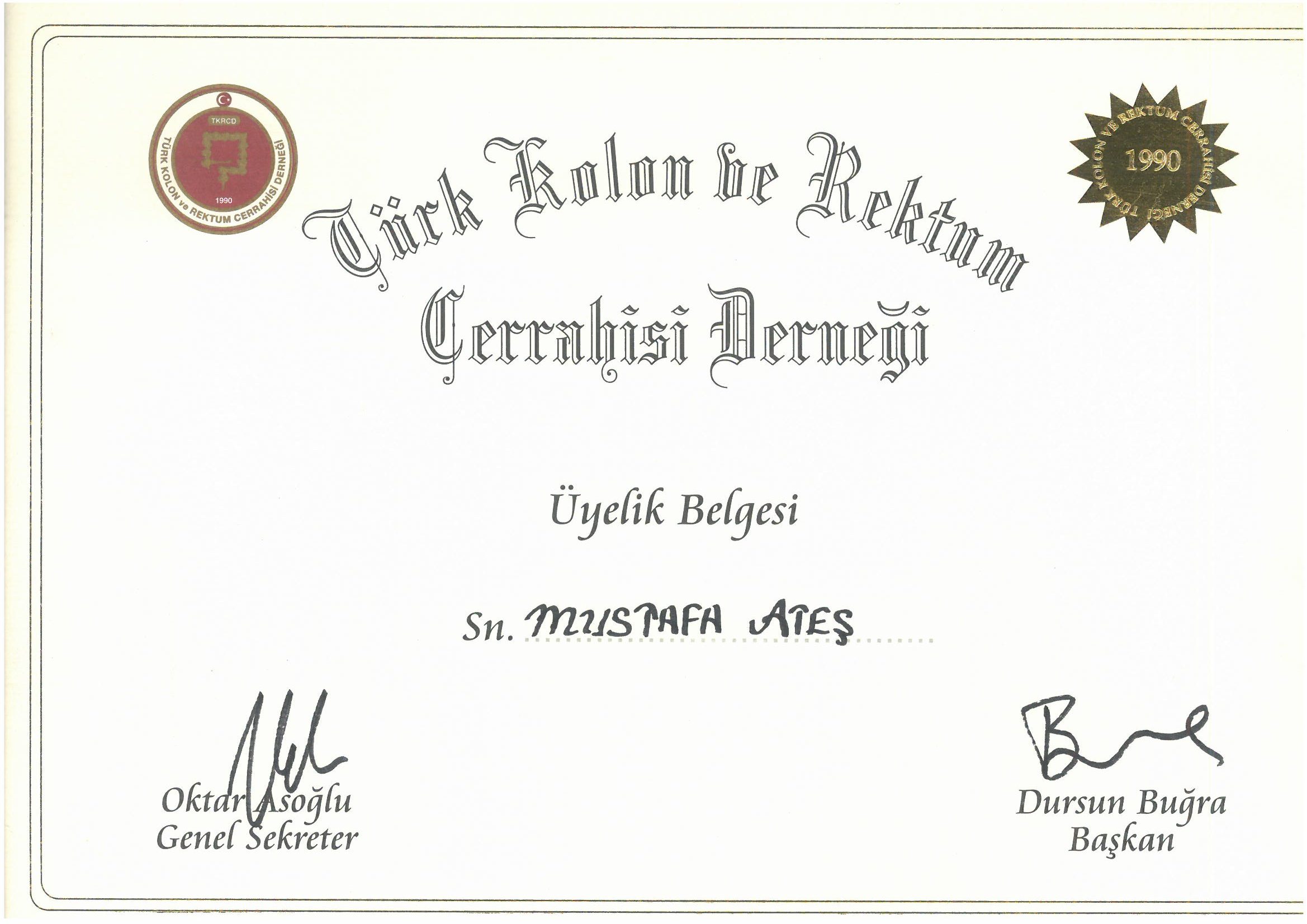 - Türk Kolon ve Rektum Cerrahisi Derneği üyeliği