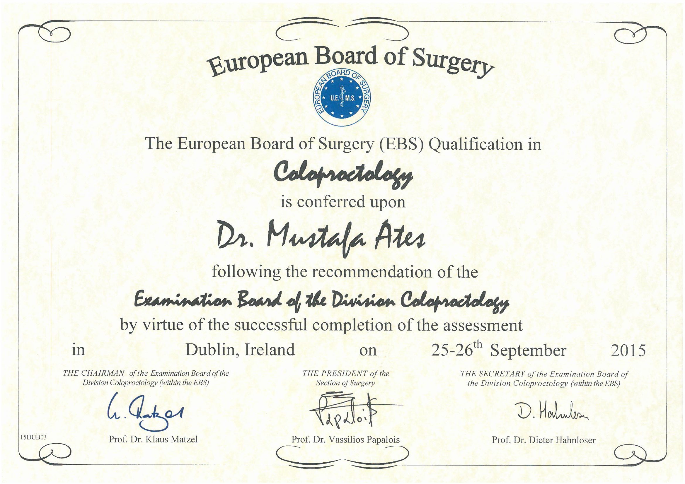 - European Society of Coloproctology (ESCP) üyeliği
